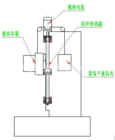 也就是帶平衡重錘的機(jī)構(gòu)來(lái)平衡掉垂向負(fù)載的重力,從而減少抱閘電機(jī)的負(fù)載,甚至可以在一定程度上可以選擇更小的垂向驅(qū)動(dòng)電機(jī),從而極大的節(jié)約成本。