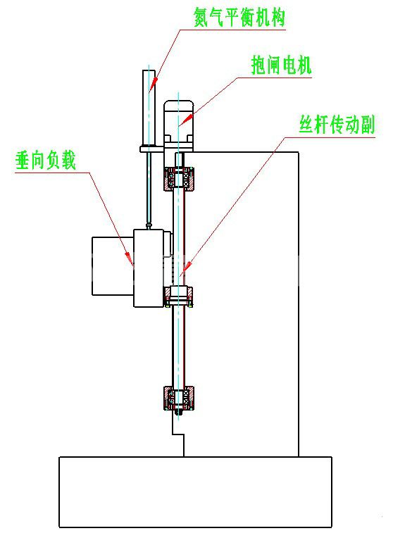 如果垂向負(fù)載很大的話,理論上我們是可以選擇更大的抱閘力電機(jī)來(lái)匹配,但是從成本上來(lái)考量是不合適的,所以我們通常采用下面這種結(jié)構(gòu)。