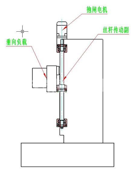 通常來(lái)說(shuō),這個(gè)樣的一種結(jié)構(gòu),我們是用電機(jī)的鎖定垂向負(fù)載的下滑的,所以在垂向電機(jī)的選擇上,我們就需要選擇帶抱閘功能的電機(jī),所謂的帶抱閘功能電機(jī)是指,電機(jī)斷電后,電機(jī)軸是鎖定狀態(tài)的,所以絲桿也會(huì)被相應(yīng)的鎖定,這樣可以防止垂向負(fù)載下滑。