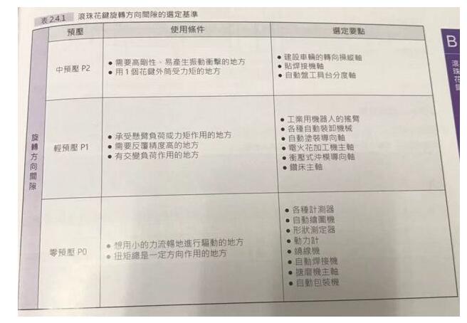如下表2.4.1中,表示了根據(jù)滾珠花鍵的使用條件,選定旋轉(zhuǎn)方向間隙的基準(zhǔn)。