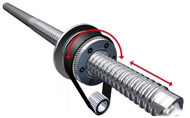 旋轉(zhuǎn)式滾珠螺桿是在螺母的外徑上加裝專用的旋轉(zhuǎn)外套使之運(yùn)轉(zhuǎn)動(dòng)作,通過(guò)讓螺母旋轉(zhuǎn)或停止的動(dòng)作,實(shí)現(xiàn)線性直線模式運(yùn)動(dòng)。