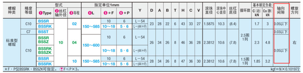 經??唇z杠的選型目錄的設計師們會了解,在選型中我們會看軸向間隙,不同的種類和型號,軸向間隙是不同的,可以參考下圖