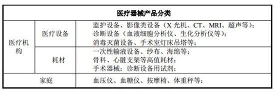 療器械產(chǎn)品品種繁多,按照終端客戶和產(chǎn)品特性,可大致進(jìn)行如下分類:
