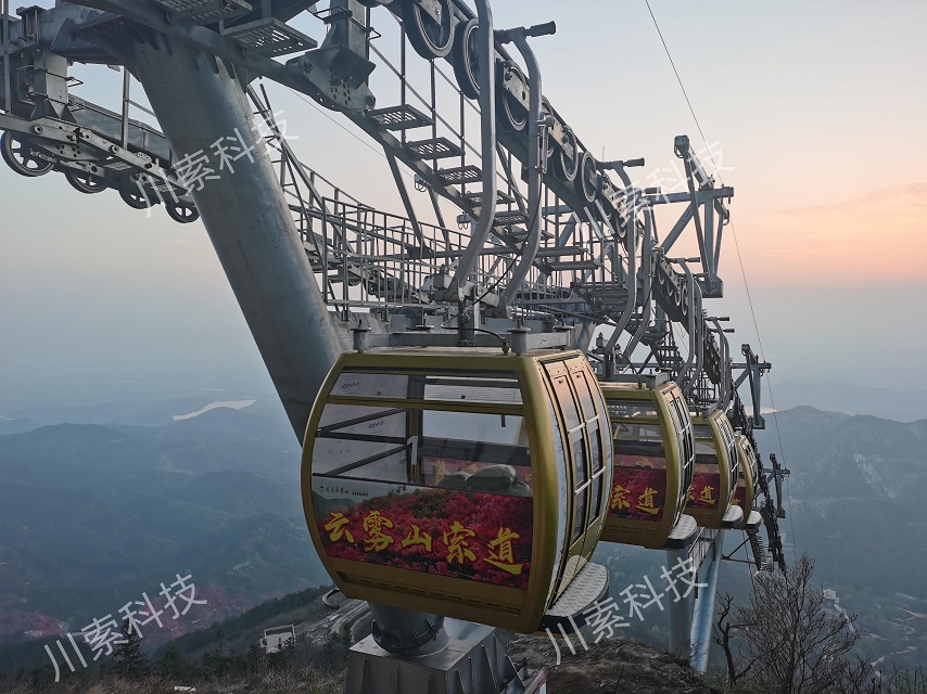 該索道平距為1097.36米,線路高差411.03米,線路采用單線脈動(dòng)循環(huán)式固定抱索器八人吊廂,最大單向小時(shí)運(yùn)量為680人。盡管在工程建設(shè)當(dāng)中頻頻遭遇新冠疫情等重大影響,為開發(fā)云霧山的旅游資源,幫助山區(qū)脫貧致富,川礦索道工程公司在當(dāng)?shù)馗骷?jí)政府的支持和業(yè)主單位配合下,克服各種困難,精心組織施工,使索道得以順利完工,得到當(dāng)?shù)卣蜆I(yè)主方一致好評(píng),也為享有"西陵勝地、楚北名區(qū)、陂西陲障、漢地祖山"美譽(yù)的云霧山景區(qū),再添一處景觀。